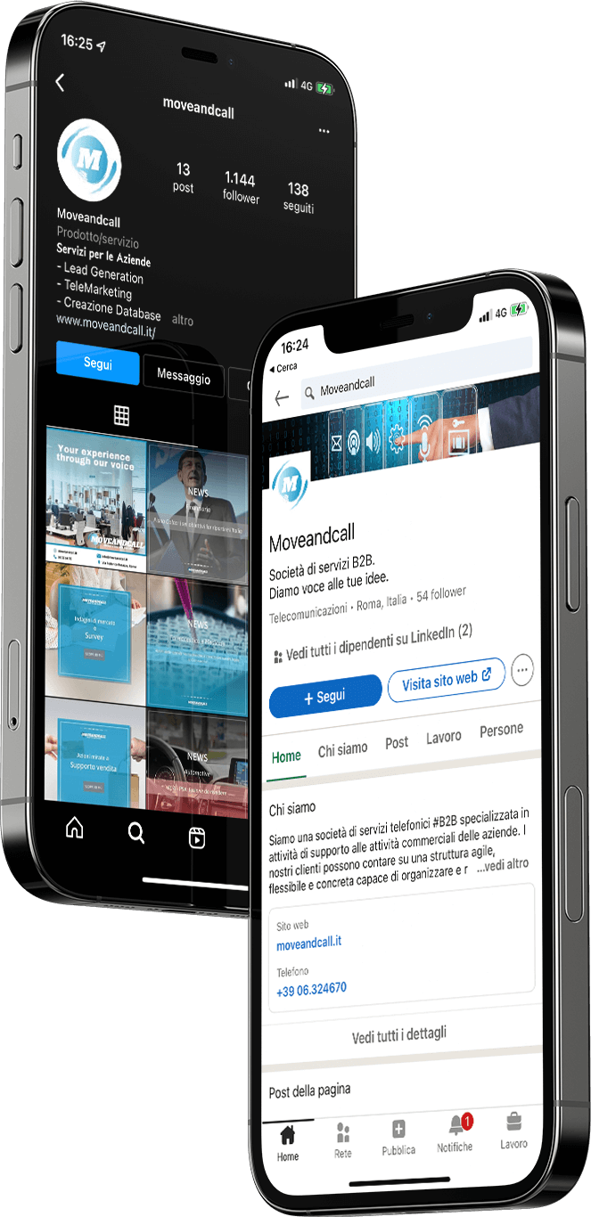 Per noi il supporto B2B è più di un lavoro: è una missione che portiamo avanti con la massima professionalità ed efficienza Per questo il nostro supporto alle aziende è personalizzato sulle esigenze del cliente, per il quale elaboriamo strategie mirate ad implementare specifici aspetti dell’impresa e a massimizzare il rendimento di ogni azione. La nostra gamma di servizi è ampia e diversificata, così da coprire ogni possibile richiesta e soddisfare qualunque necessità, dall’acquisire nuovi clienti al portare avanti campagne telefoniche o svolgere indagini di mercato.